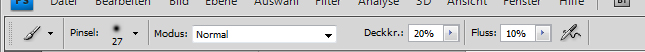 Jetzt wird ein weicher Pinsel ausgewählt und die Einstellungen wie folgt vorgenommen, wobei die Vordergrundfarbe ein grau sein sollte und die Hintergrundfarbe auf weiß gesetzt wird:
