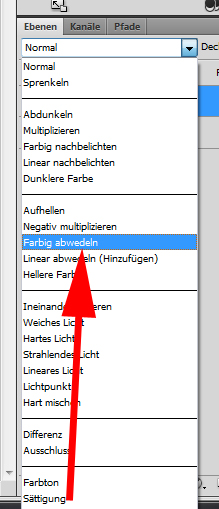 Danach wird die Füllmethode auf „Farbig anwedeln“ eingestellt: