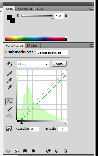 Hier die Anpassung der Gradationskurve für den grünen Kanal: