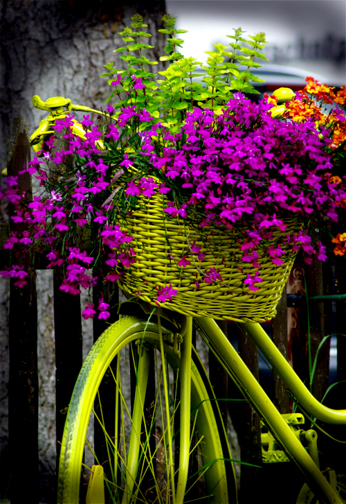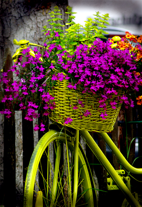 Neulich waren wir mal wieder mit den Kindern unterwegs in der Eifel. Dabei entdeckte ich dieses grelle gelb-grüne angestrichene Fahrrad mit den farbenprächtigen Blumen darin. Das Bild des „Blumenfahrrades“ lud mich gerade dazu ein mal wieder ein wenig rum zu experimentieren. Mein erster Gedanke war, dass man dem Fahrrad doch einfach einen Retro-Look verpassen könnte, jedoch habe ich dies schon des Öfteren auf das eine oder andere Photo angewendet. Dann kam mir die Idee das Foto nach dem Prinzip von Hipstamatic in ein analoges Bild umzuwandeln.