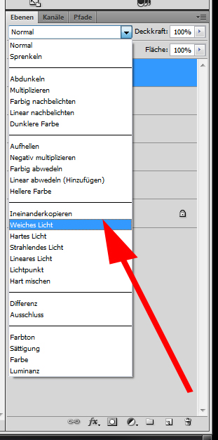 Um das eigentliche Bild wieder zum Vorschein zu bringen habe ich die Füllmethode auf weiches Licht und die auf Deckkraft 60% eingestellt: