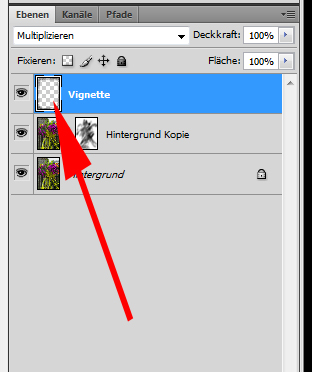 Im nächsten Schritt habe ich eine neue Ebene erstellt. Diese dient dazu um eine schwarze Vignette zu erstellen. Die Füllmethode dieser Ebene habe ich unter „Füllmethode für Ebene einstellen“ auf „Multiplizieren“ eingestellt: