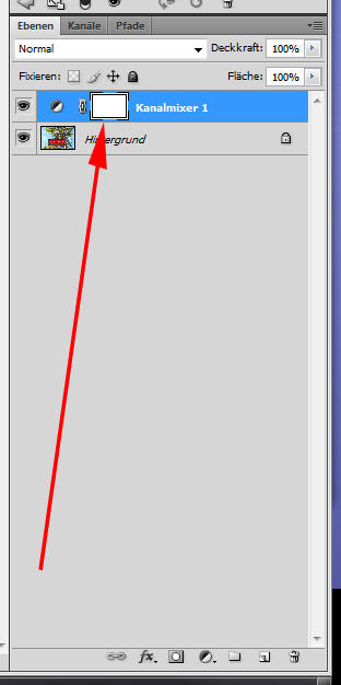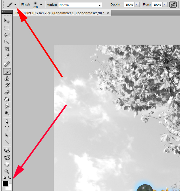 Auf der Ebene des Kanalmixers wird nun mit dem Pinsel über das Motiv gegangen, welches farblich hervorgehoben werden soll.