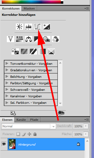 Anschließend wird unter den Korrekturen die Gradationskurve ausgewählt: