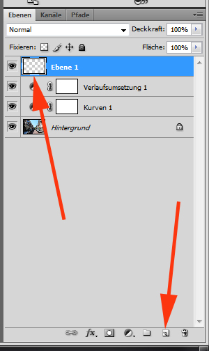 Damit wir den Verlauf aufziehen können, muss im nächsten Schritt eine neue Ebene erstellt werden. Diese neue Ebene wird im Ebenenbedienfeld als oberste Ebene angeordnet: