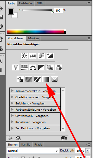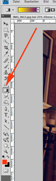 Anschließend wird das Verlaufswerkzeug ausgewählt: