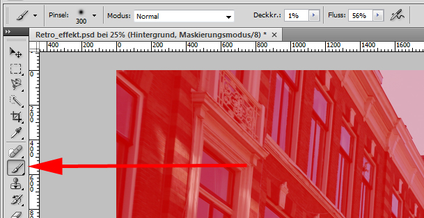 Mit dem Pinselwerkzeug wird jetzt über die Ecken und Kanten gemalt, wo später der Effekt auftreten soll.