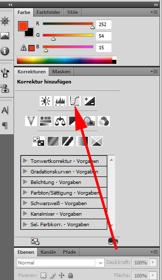 Jetzt wird die Gradationskurve ausgewählt. Dadurch entsteht eine neue Ebene, die zur Anpassung der einzelnen Kanäle genutzt wird: