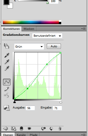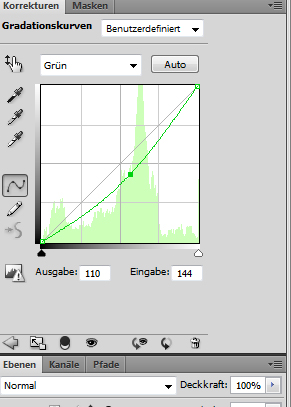Als nächstes wird der grüne Kanal bearbeitet. Nachstehend der dazugehörige Screenshot sowie das entsprechende Ergebnis: