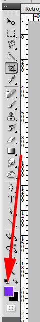 Im nächsten Schritt werden nun weitere kleine Fehler zu dem Bild hinzugefügt, um das Bild noch realistischer im Retro-Effekt zu gestalten. Dazu wird über allen bisherigen Ebenen eine weitere Ebene erstellt. Dann wird die Vordergrundfarbe auf lila eingestellt.