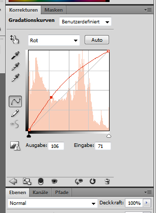 Zunächst wir der rote Kanal ausgewählt und bearbeitet