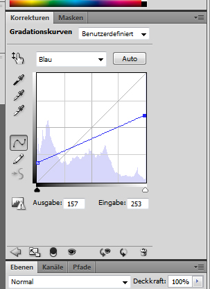 Zum Schluss wir nun der blaue Kanal bearbeitet mit den nachstehenden Einstellungen und dem entsprechenden Ergebnis: