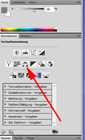 Im nächsten Schritt wird unter Korrekturen hinzufügen die Farbbalance ausgewählt: